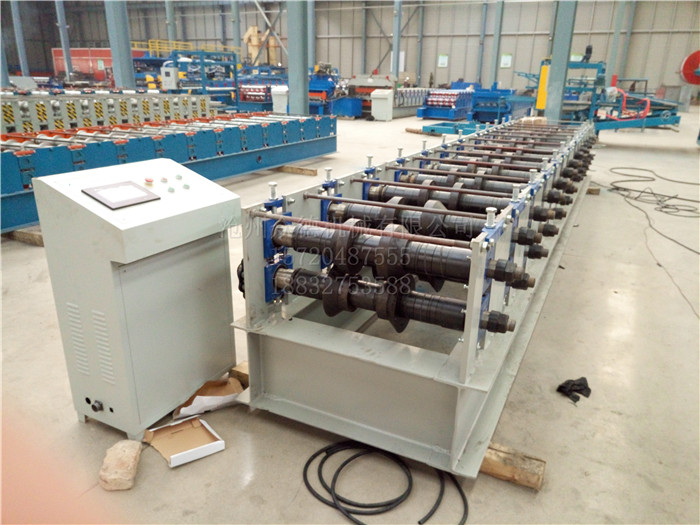 止水钢板设备主要由机身、压型模具、泵站、电脑控制柜、液压剪切、等组装成型,由电动机带动链条传动,钢板经上下辊滚压成型,再经电脑控制系统控制其长度和数量,操作简单便捷。 止水槽成型机械设备的基本参数: 设备外形尺寸:8500mm*1500mm*1200mm 设备重量:5 吨 设备成型电机功率:11KW 剪切功率:7.5KW 原材料板宽:300mm 板材厚度:2-3mm 设备滚轮排数:12排 工作速度:8-15m/min 液压站压力:10-12Mpa 滚轮材质:Cr12钢淬火,硬度:55°—60° 滚轴材质:45#钢镀硬铬,直径:Ф90mm 电控系统:全机采用工业电脑PLC控制 注:压板厚度增加,可订做 止水槽设备特点:设备采用自动控制软件,实现生产信息化管理。止水槽设备还具有操作简单、容易维护、保养以及机械的调试、模具更换容易等优点。整个设备自动化控制系统采用高集成的网络,使自动化系统性能。