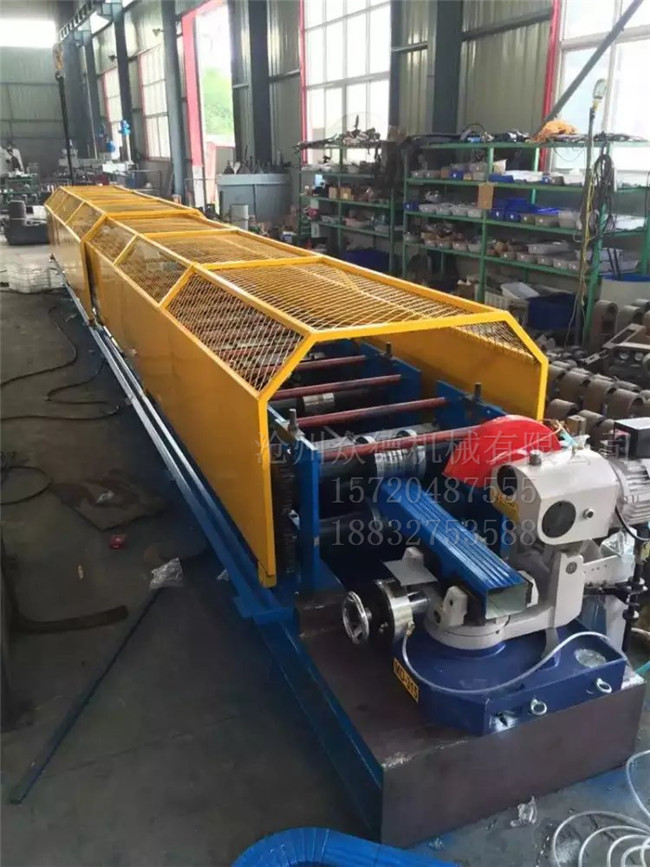 描述:落水管设备为全自动电脑控制,自动加工生产,搭配原料开卷机,将原料放置机器进料口,机器带动板材自动滚压,经多道滚轮加工,完工后电脑自动控制切断,计量尺寸,误差小。飞锯切断,简单易维护。
