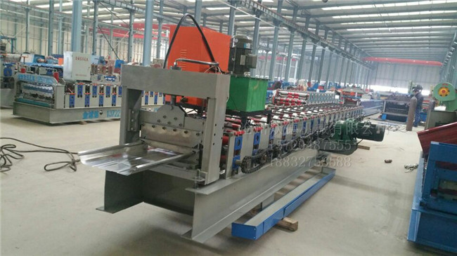 角驰475压型机,生产的各种隐藏式屋面板,解决了常规系列的屋面渗漏问题,角驰475型彩钢压型板连接,打破了传统屋面用螺枪连接的惯例,安装方法彩用45度揽口咬合安装,使屋面效果好。