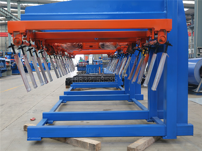 自动码垛机是机、电一体化高产品。该码垛机可满足彩钢板长度7米内的生产需要,机器加工后的成品板材经过码垛机后,自动码放整齐,可按照要求的编组方式和层数,完成对各种彩钢瓦的码垛。 优化的设计使得垛形紧密、整齐。