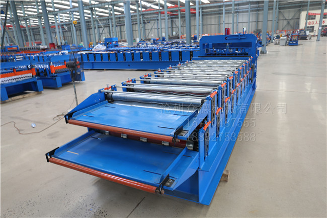 描述:此款双层琉璃瓦压型机器,为一机双型号琉璃瓦压型机,上层加工琉璃瓦,下层加工普通墙面瓦;电机的主功率为4KW,带动力强,该机器的滚轮采用机床加工而成,每个工件的精度!机器组装由钳工,水平测量组装。控制器为PLC电脑控制器,加工板材的厚度为0.2-0.8mm,全自动液压模具自动切断,生产,操作简单。
