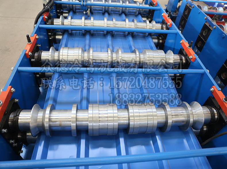 全自动760压型设备:该设备为全自动电脑控制,自动将板材加工成型,原料进料前宽度为1000mm,成型后使用面积为760mm,电脑控制,自动切断,剪裁断面整齐无毛刺,便于施工安装。采用链条+链轮传动,的了生产速度。 该设备采用高精电脑控制器,触摸大屏显示器,可换多国语言,操作简单;控制器可同时输入多组不同生产数据,一键启动生产,。 |