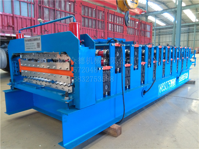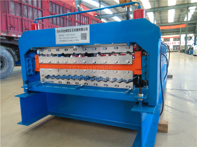 850-910双层彩钢压瓦机,主要由进料导入平台、成型主机、成型剪切装置、液压站、电脑控制系统等几部分组成。上下层转换操作简单,只需通过电控柜上的转换钮来转换 分别控制每一层,动力也可通过离合器分别控制每一层。 双层彩钢瓦压瓦机设备采用新双层设计,一机两用,占地面积小,运输方便,节约成本。本厂售后服务完善,并可根据用户要求进行设计制造,同时对用户进行指导,生产、安装、调试维修。该机型经济实惠,可将两型号设备合成一台,即节省占地面积,而且双层成本要远远低于两台单层机,是用户。