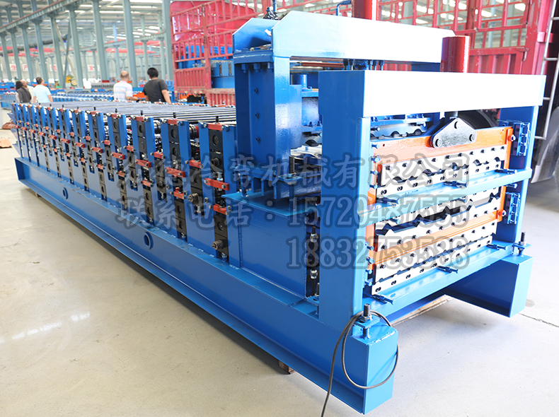 三层彩钢瓦压型机是一机三型号彩钢瓦生产设备,一台机器可以生产三种型号的彩钢瓦建材,该机器由原料放料架、引料平台、压型主机、成型后切割等几部分组成,生产的彩钢瓦外观工整美观、漆纹均匀、、,广泛应用于工业民用建筑,如厂房、仓库、体育馆、展览馆、影剧院等房面和墙体。 三层彩钢瓦设备一机多用,不仅节省了占地面积,成本也降低,三层压瓦机结构轻巧,,特别适合场地小的客户选购。 |
