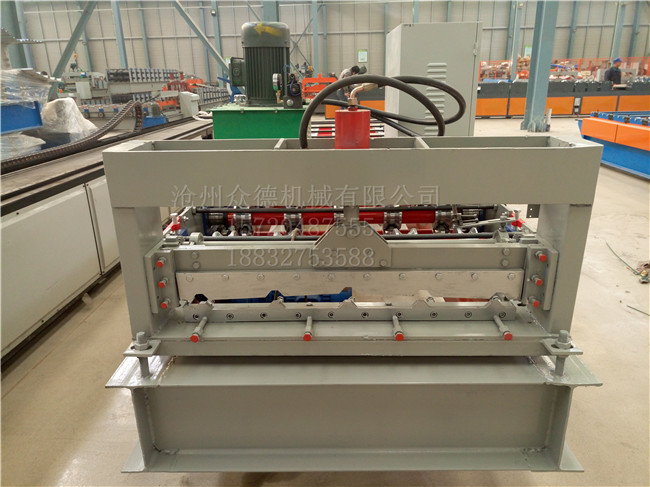:众德机械 名称:840钢板压型设备 成品用途:用于铺设房屋的屋顶或外墙 电机功率:3kw 机器重量:2.1T 成型排数:11排 生产速度:10-15米/分钟 剪切方式:液压切断 传动方式:链轮+链条传动 外形尺寸:5800*1500*1500mm 加工板材厚度:0.2-0.8mm 可加工材质:彩钢板(其他材质均可定制) PLC控制器:采用(可自?。?/b>