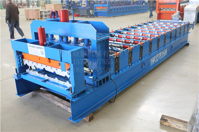 840仿古琉璃瓦压型设备,该设备为一机双用型压瓦机械,可以生产普通840屋顶板,也可以生产仿古型840屋顶板。该设备为全自动电脑控制,自动加工生产,操作简单便捷。 主要技术参数: 1.被动放料:手动涨紧,被动放料 2.放料架承重:5T 3.机架:采用300H钢焊接 4.成型机导向进料架形式:侧向滑板式 5.成型机形式:14mm墙板式链传动 6.轴径: ¢70㎜ 7.链条:1.0寸单排 8.成型机电机功率:3KW减速机 9.成型机线速度:单板840板型10-11m/min 仿古琉璃瓦板型2-5米/分钟 10.成型机道数:11道 11.轧辊材料:45#钢煅打件 12.液压站电机:3kw 13.液压站油泵:齿轮泵 14.切断方式:液压剪切 15.成型剪刀片材料:Cr12 16.剪切刀片热处理:HRC58°-60° 17.轧制厚度:0.3-0.8mm 18.材料展开宽度:1000mm 19.长度定尺精度:±0.2mm 20.电脑采用PLC电脑操作 变频器 |