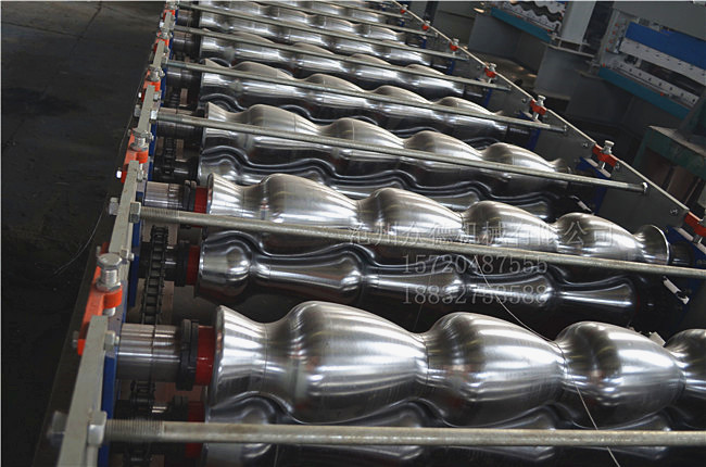 :众德机械 名称:828偏弧琉璃瓦设备 用途:用于加工金属板琉璃瓦 电机功率:4kw 机器重量:4T 剪切方式:液压切断 传动方式:链轮+链条传动 外形尺寸:7800*1500*1500mm 加工板材厚度:0.2-0.8mm PLC控制器:采用 全自动角驰828型偏弧琉璃瓦压瓦机,设备主要由装料架,装料架支座,进料导入平台,校平装置,压型主机,定型装置,成型剪切装置,液压泵站,全数控电脑自动控制柜等几部分组成.