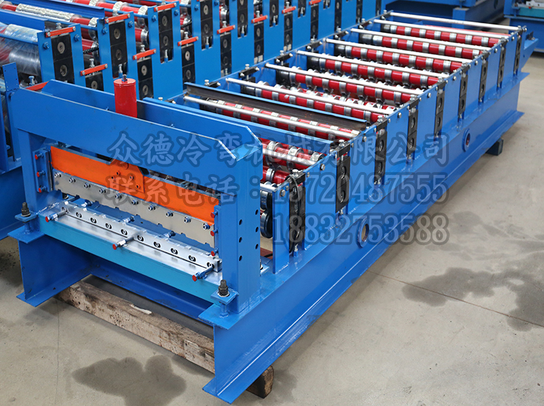 描述:全自动910压型设备:该设备为全自动电脑控制,自动将板材加工成型,该设备加工原料宽度为1米,成型后使用面积为910mm,整个生产过程均为电脑控制,板材成行后自动切断,剪裁断面整齐无毛刺,便于施工安装。